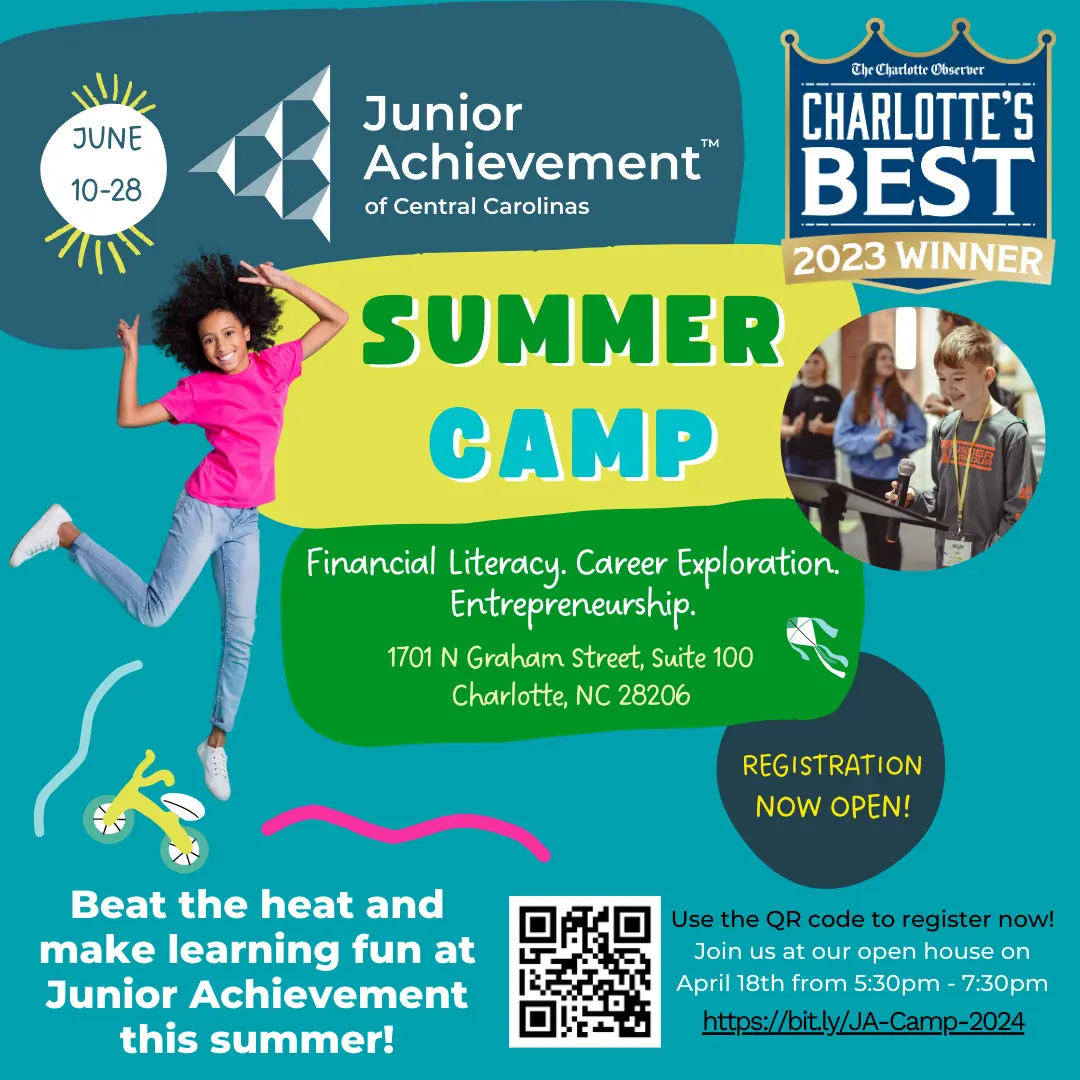 Eager for a unique way to enrich your student's learning this summer? Come out and meet the staff, tour our facility, and play fun games as a family! Junior Achievement Summer Camp provides campers with programs on career success, personal finance, and entrepreneurship in the heart of Charlotte's Innovation Corridor, Camp North End.